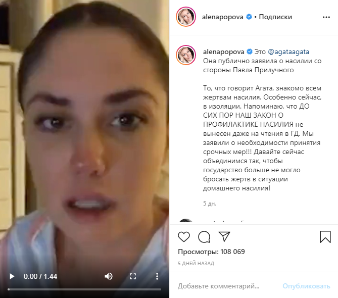 — Конечно, мы всегда говорим, что в случае домашнего насилия есть знаменитая фраза: «Не молчи и не бойся». Чем больше жертва начинает публично говорить о насилии, тем меньше у агрессора шансов купить правосудие за счёт своего влияния и известности или денег, когда полиция, прокуратура или суд к нему относятся весьма лояльно. С одной стороны, публичность помогает жертве, но, с другой стороны, она очень вредит психике жертвы, потому что она сталкивается со вторичным абьюбзом, ей начинают писать, что она – дурна и сама виновата, что она пытается поймать хайп, как сейчас пишут Агате. Это – абсолютный стандарт, с которым жертвы сталкивается во всём мире, но в России всё это усилено ультрафундаменталистским влиянием, потому что церковь и фундаменталисты в последние 6 лет имеют очень много медийного веса. Конечно, огласка помогает, но вы даже не можете представить, какое количество известных женщин к нам обращается! Это – огромное число людей с очень известными фамилиями, и о них принято думать, что они живут богато и счастливо. Меня всегда волновал вопрос о том, почему же эти люди молчат? В конце прошлого года, до всего этого коронакризисного мракобесия, их поддержка могла сильно повлиять на принятие закона о домашнем насилии. Но на эту тему высказались лишь единицы: певица Валерия, которая подвергалась насилию много лет назад, и актриса Ирина Горбачёва, а также несколько известных людей, которые уже подвергались домашнему насилию. Но если взять весь список, который я знаю лично, и его озвучить, то у агрессоров в России не было бы ни малейшего шанса быть безнаказанными, потому что сила влияния этих женщин на свою аудиторию очень велика. Мне очень понравилась, как в самый разгар борьбы за законопроект о домашнем насилии Ольга Бузова выложила в своих аккаунтах пост о том, чтобы люди очнулись, потому что нам нужен данный закон, но никто не понимал, почему она стала так сильно выступать за этот закон, пока вдруг не выяснилось, что Дмитрий Тарасов (футболист, бывший муж Ольги Бузовой. Прим автора) говорил на видео, как круто дать женщине «леща», когда она не права. Если бы большое количество суперизвестных блогеров, лидеров мнений и инфлюенсеров (инфлюенсер – человек, мнение которого имеет значение для определённой аудитории. Прим автора) разных целевых групп сказали бы своё веское слово, то это бы была мощь!