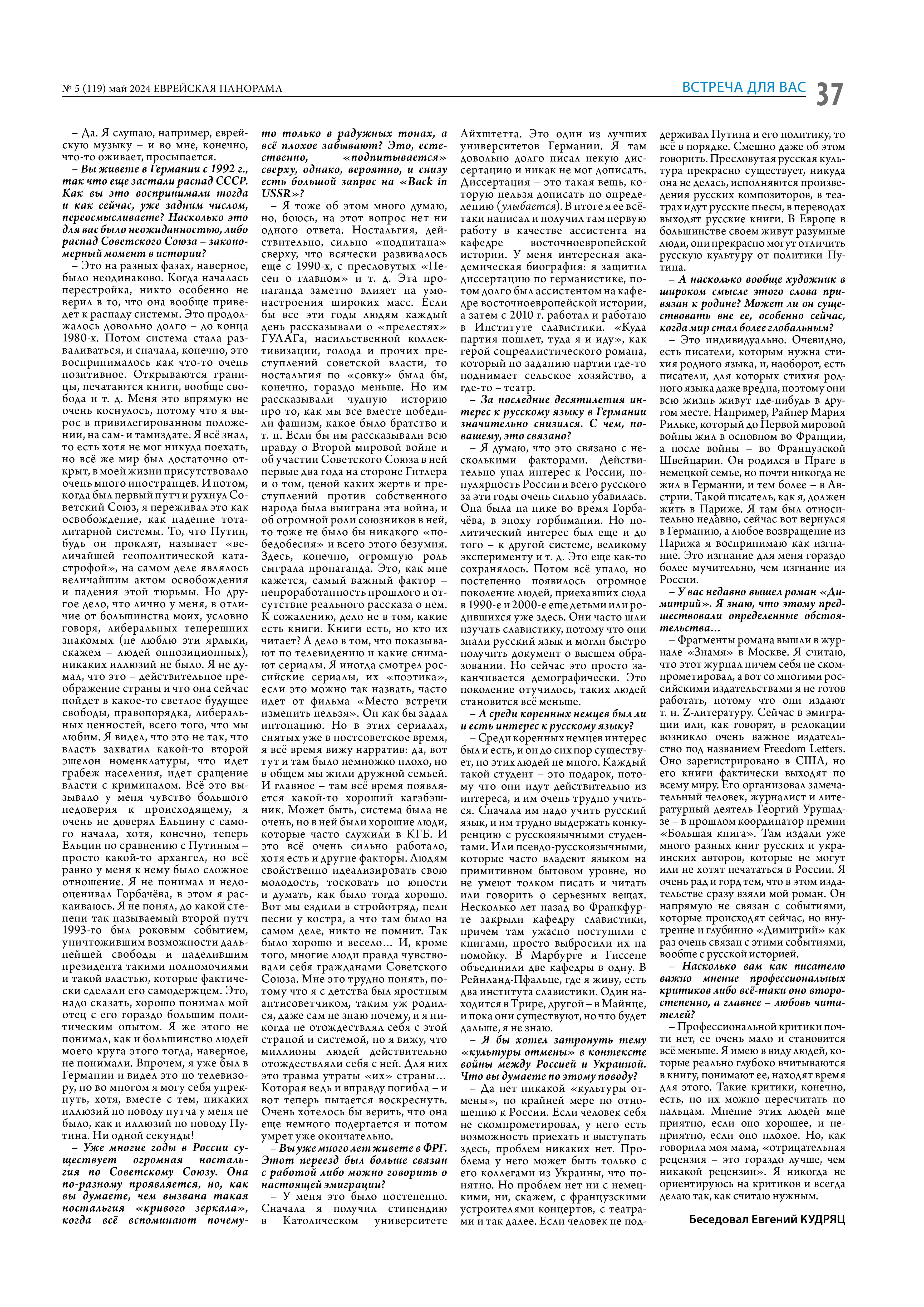 Интервью с писателем Алексеем Макушинским Евгений Кудряц "Еврейская панорама" 1 Май 20249 Май 2024 1 Minute Интервью в формате pdf Полную видеоверсию интервью можно увидеть тут Поделиться ссылкой: Нажмите, чтобы поделиться в X (Открывается в новом окне) X Нажмите, чтобы открыть на Facebook (Открывается в новом окне) Facebook Нажмите, чтобы поделиться записями на Pinterest (Открывается в новом окне) Pinterest Ещё Нажмите, чтобы поделиться на LinkedIn (Открывается в новом окне) LinkedIn Нажмите, чтобы поделиться в Telegram (Открывается в новом окне) Telegram Нажмите, чтобы поделиться записями на Tumblr (Открывается в новом окне) Tumblr Нравится Загрузка... Похожее Опубликовано 1 Май 20249 Май 2024